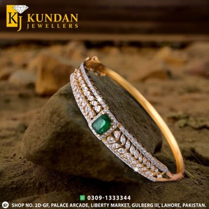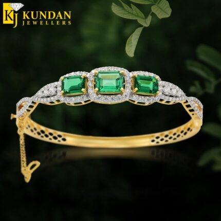 Diamond-Cut Gold Bangles Set with Sparkling Stone