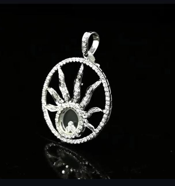 This beautifully crafted locket combines 10.95 grams of pure gold with 2.22 carats of brilliant diamonds, creating a piece that feels both modern and timeless. The circular frame is lined with shimmering diamonds, while the inside features an elegant sunburst design, giving the locket a radiant, powerful look.