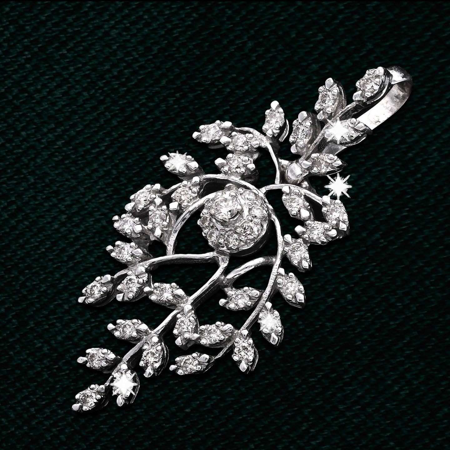 This 11.04-gram gold pendant is crafted with a stunning leafy floral pattern that showcases refined artistry and natural elegance. Set with 1.89 carats of shimmering diamonds, each stone is placed thoughtfully across the branches and petals, creating a soft, radiant sparkle from every angle.