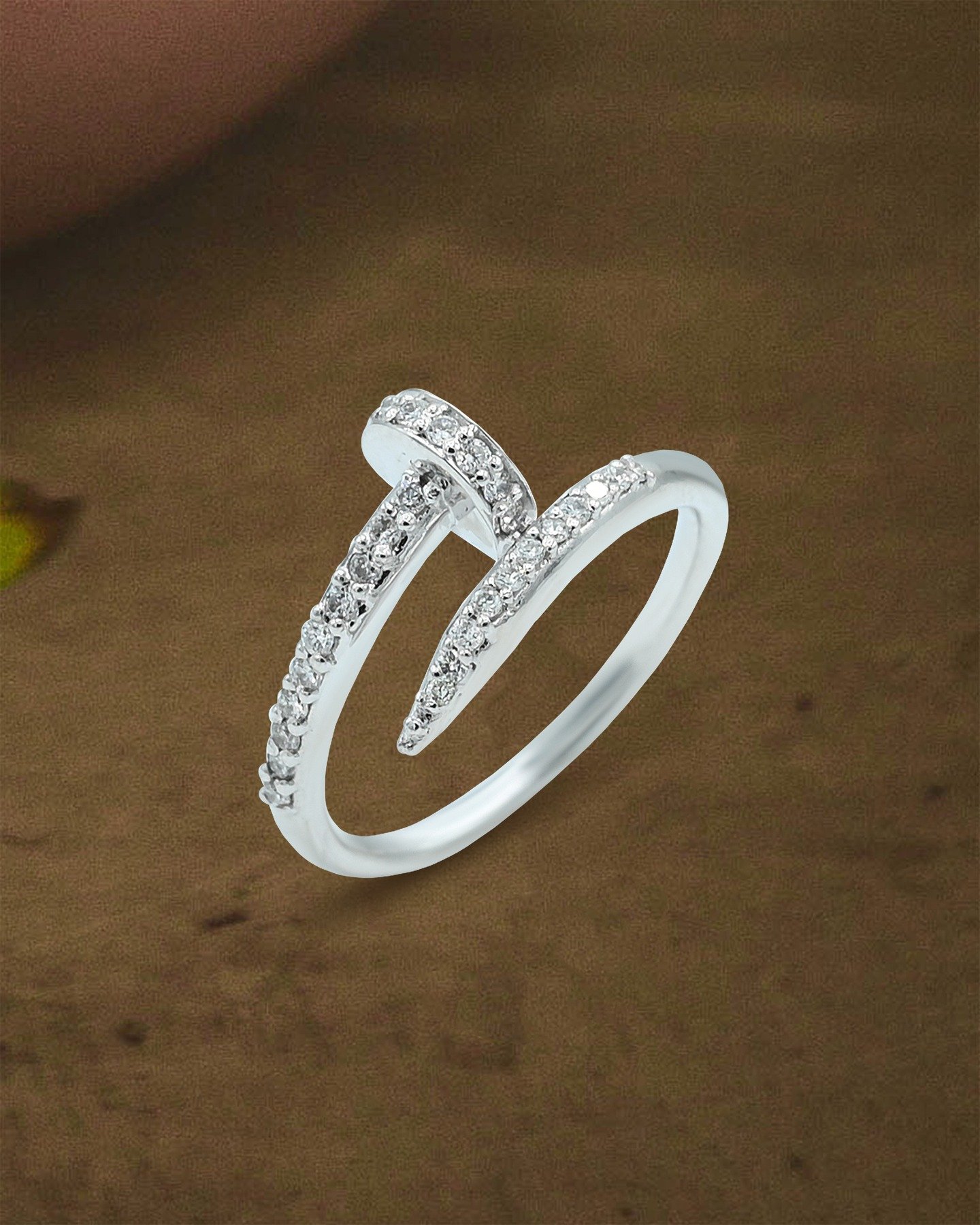 Set with 0.30 carats of brilliant diamonds, delicately placed along the nail head and shank, the ring offers subtle sparkle without overwhelming the minimalist design. Its polished finish and sculptural form create a perfect balance between bold style and everyday wearability.