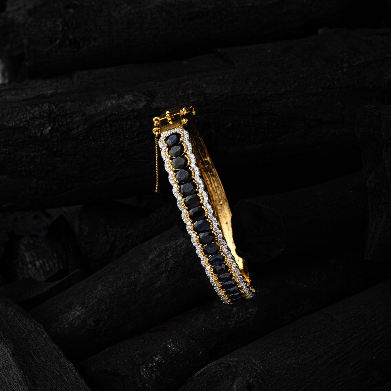 Designed for elegance and comfort, the structured bangle sits gracefully on the wrist, making it perfect for both formal occasions and statement everyday wear. The Natural Sapphire Elegance Bangle is an ideal choice for those who love classic luxury with a modern edge.